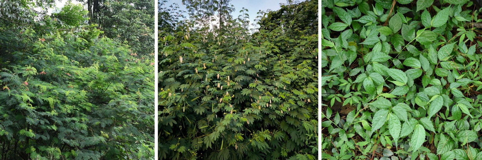 beberapa jenis asing invasif target, kaliandra bunga merah, kaliandra bunga putih, dan kayu afrika