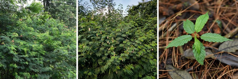 Beberapa jenis asing invasif target, kaliandra bunga merah, kaliandra bunga putih, dan anakan kayu afrika